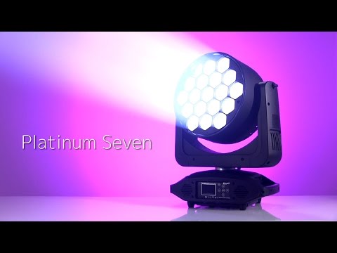 Platinum Seven is a professional-grade lighting solution. The Platinum SEVEN™ is a patent pending high power 7 color wash luminaire, featuring (19) 25W multi-chip LEDs including Red, Green, Blue, White, Amber, Cyan, and UV.