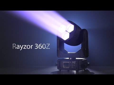 The RAYZOR 360Z™ is a brilliant compact beam moving effect luminaire with (3) 60W Osram™ RGBW LEDs. Features include 8° to 77° motorized zoom, fast and precise 16-bit continuous full 360° pan and tilt rotation, pixel control, adjustable color temperature (2,700K - 8,000K), electronic strobe, dimmer, and selectable dimming curve effects, DMX, RDM (Remote Device Management), and Art-NET support, 5pin XLR, RJ45 ethernet, and IP65 Locking Power Cable in/out connections, (7) button control full color 180° reversible menu display, multiple unit power linking, flicker free operation for TV and FILM, and a multi-voltage universal auto switching power supply (100-240v).